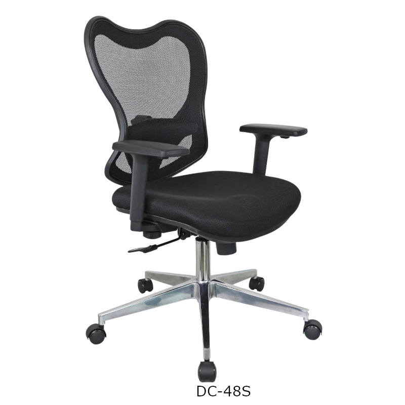 Respaldo de mesh, transpirable con ajuste y soporte lumbar. Altura del respaldo 55cm, ancho 46cm